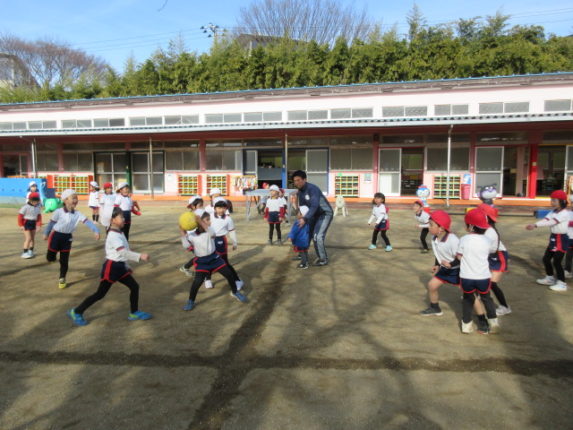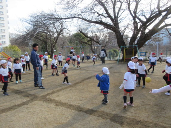 年長・年中組では、ドッチボールが流行ってます。今日もみんなで、楽しみました!