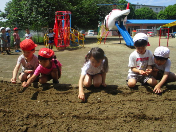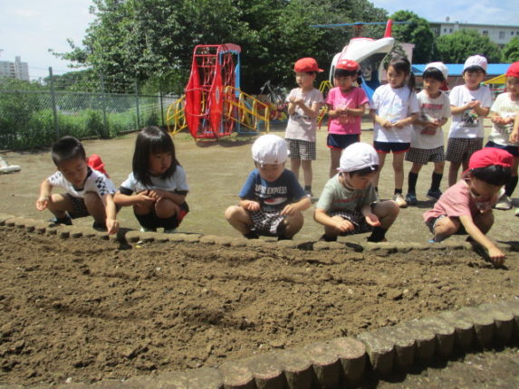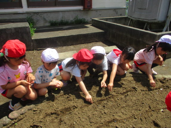 年中組で、ひまわりの種を植えました。
